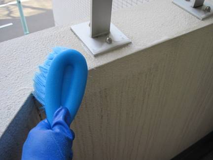 壁材を傷めぬように弱アルカリ洗剤等で、擦り洗浄します。